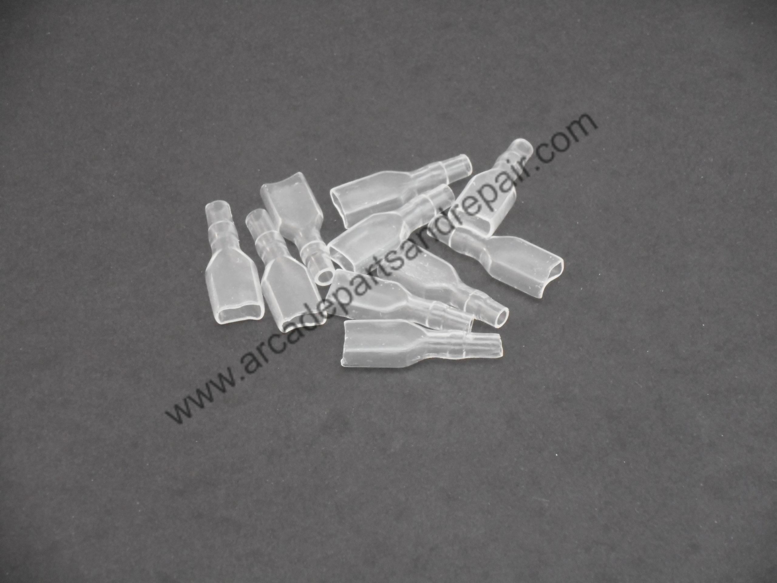0.250 Female Quick Disconnects slide on fully Insulating Sleeve 18-22 AWG wire (10 Pieces) (QD1008). These are 0.250 / 6.35mm / 1/4″ Female Quick Disconnect slide on rubber silicon fully insulating transparent sleeves / boots that are a must and are used on (QD1011) to make them fully insulated. These are very commonly used on arcade and pinball games and many coin door lights and anywhere else you need to make the connectors fully insulated. For every quantity of 1 added to your cart you will receive 10 pcs QD sleeves loose.
