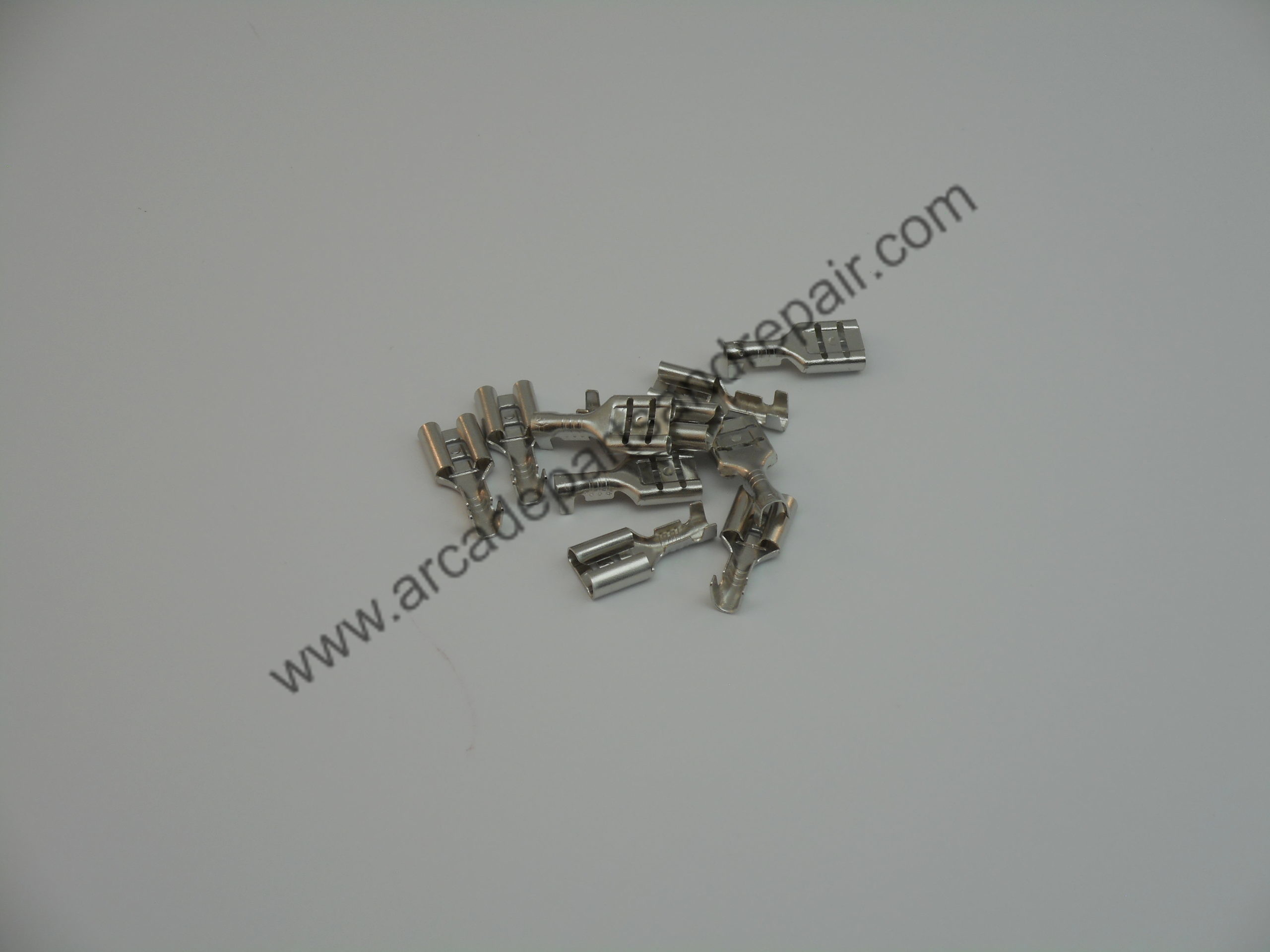 0.250 Female Quick Disconnects Non-Insulated 18-22 AWG wire (10 Pieces) (QD1011). These are 0.250 / 6.35mm / 1/4″ Female Quick Disconnect Solderless Crimp Terminals and we have silicone rubber fully insulating sleeves that you can buy to put over these (QD1008) if you want to make them fully insulated. These are very commonly used on arcade and pinball games and many coin door lights and these are the best and strongest terminal for a Gas-Tight crimp. For every quantity of 1 added to your cart you will receive 10 pcs QD Terminals loose and/or on carrier strips.