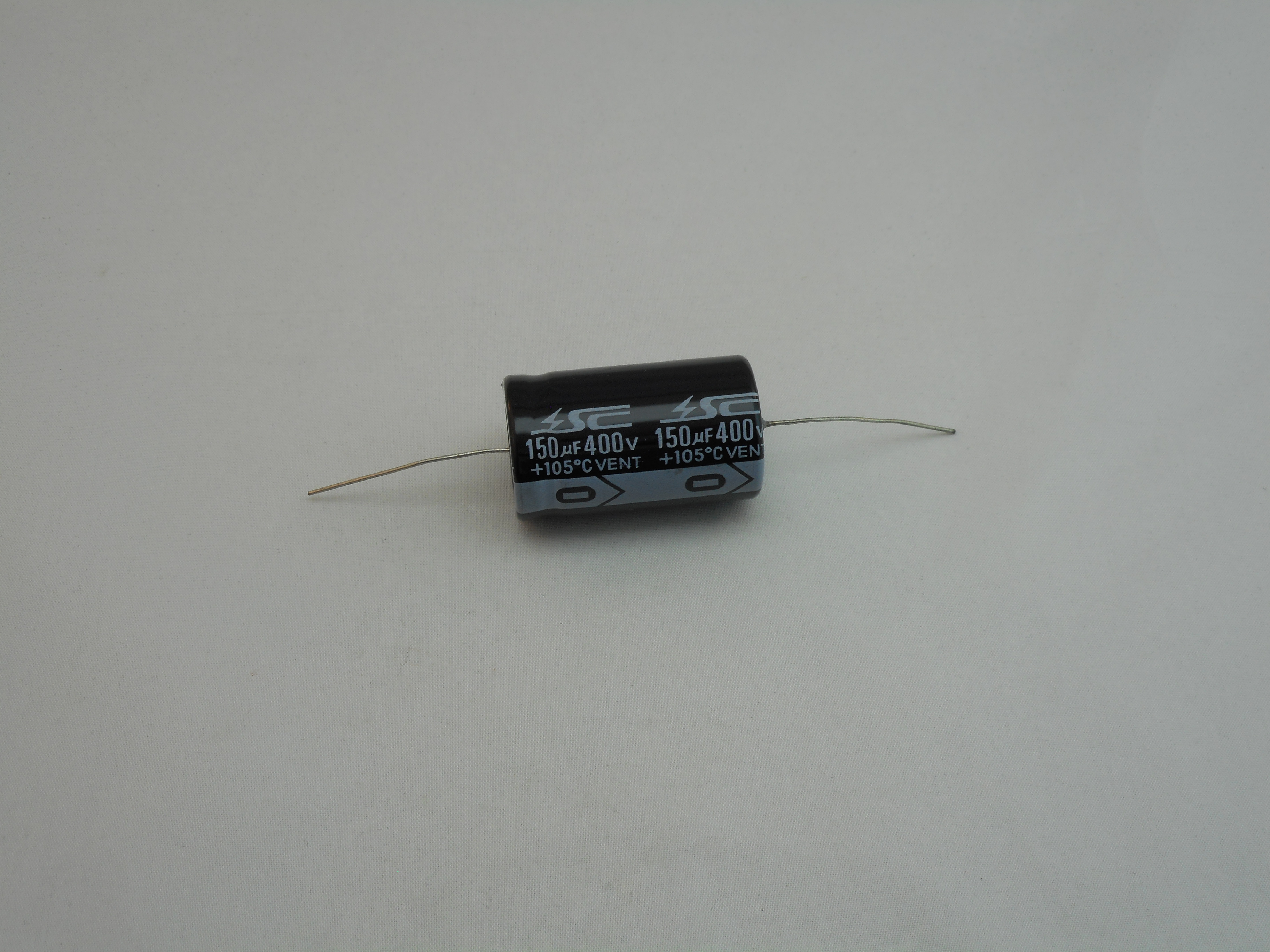 150uF 400v Axial 105C 2000 hour Capacitor with a case size of 25x44mm. High Temp and a longer hour rating than most other caps on the market.