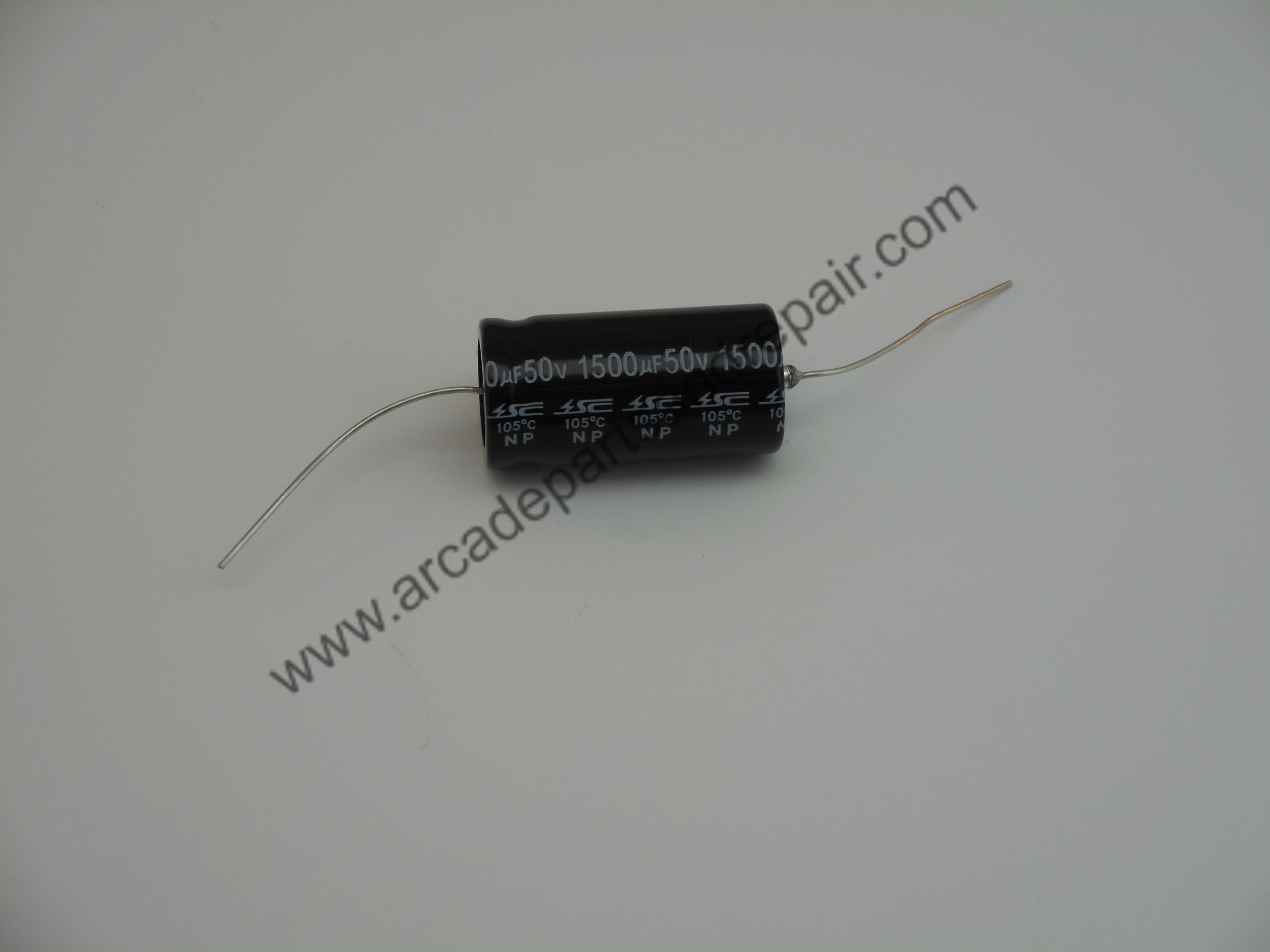 1500uF 50V Non-Polar Capacitor Axial 105c 2000 hour Bi-Polar. These capacitors have a DF (Dissipation factor) of less than 5% which is better than any comparable capacitor on the market. Case size is 35x18mm. High Temp and a longer hour rating than most other caps on the market. These are NEW and not old stock as we just had them made for the Jukebox cap kits we are working on and these replace the 1500uF 35V BP / NP caps on the Seeburg SHP3.