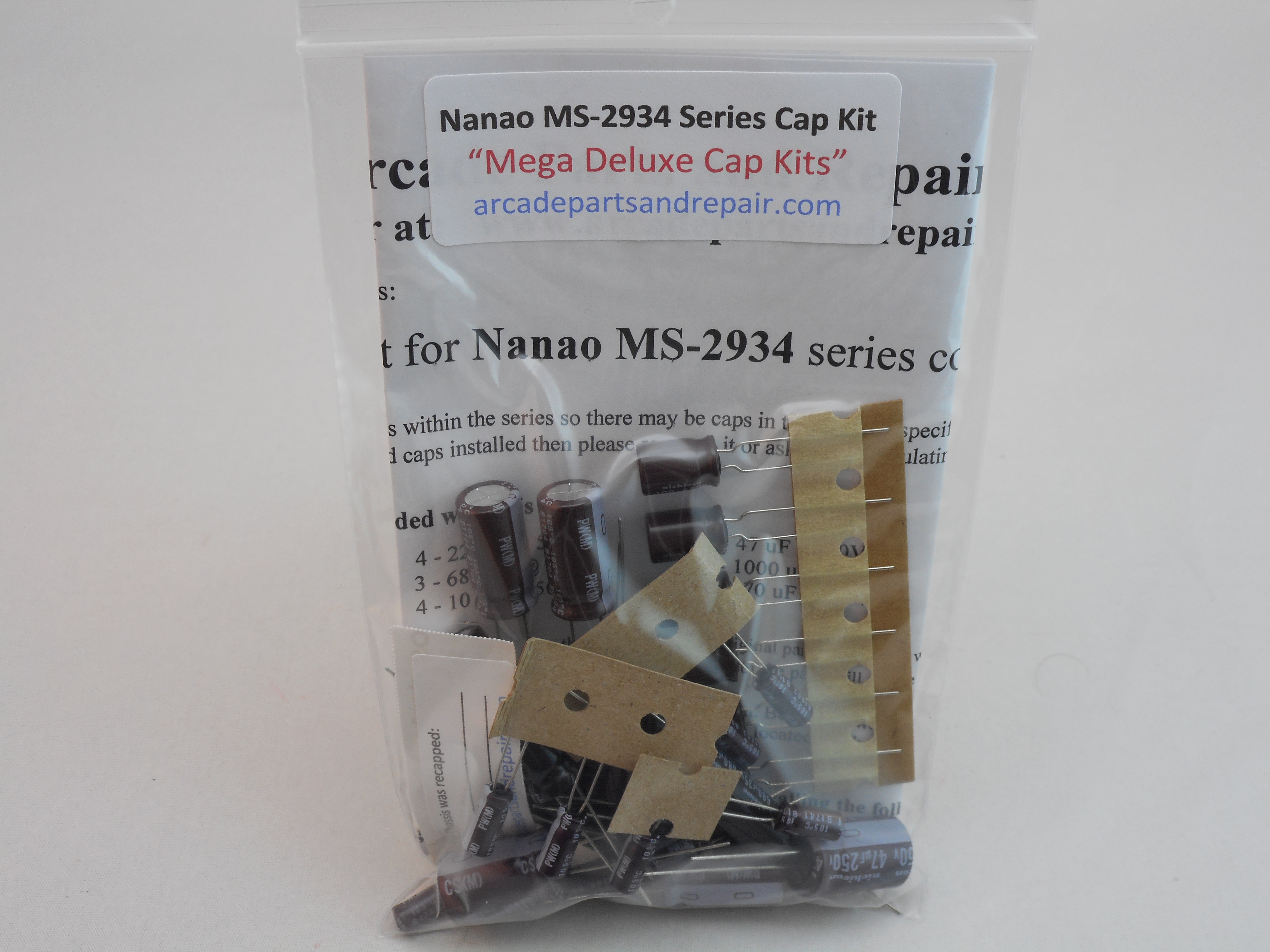 Nanao MS-2934 Series arcade Monitor Cap Kit 105C 100% Nichicon Capacitors.  32 Capacitors included in the kit along with great instructions.  “Mega Deluxe Cap Kits”