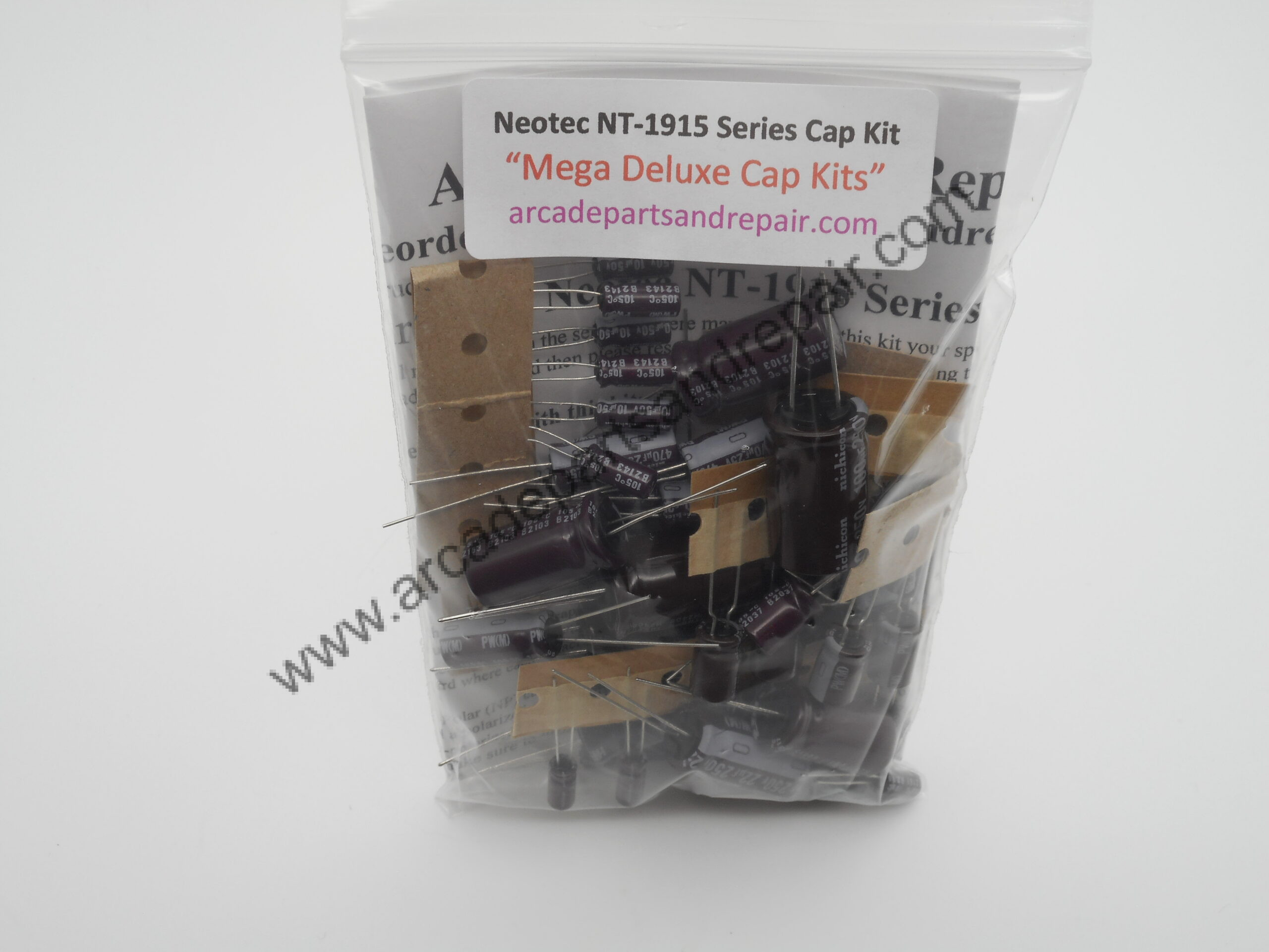Neotec NT-1915 Arcade Monitor Cap Kit 105C 100% Nichicon Capacitors. “Mega Deluxe Cap Kits” Our kits have some of the BEST quality, low ESR, and longest life capacitors included. All of our Cap Kits / Get Well Kits include a sticker so you can place it on the monitor to help you keep track of the work you did and when it was done. 57 Capacitors included in this kit which includes 1 Bi-Polar Capacitor and with great instructions. NOTE: Filter cap for this chassis is a 330uf 400v and is not included in kit but can be purchased separately on our site.