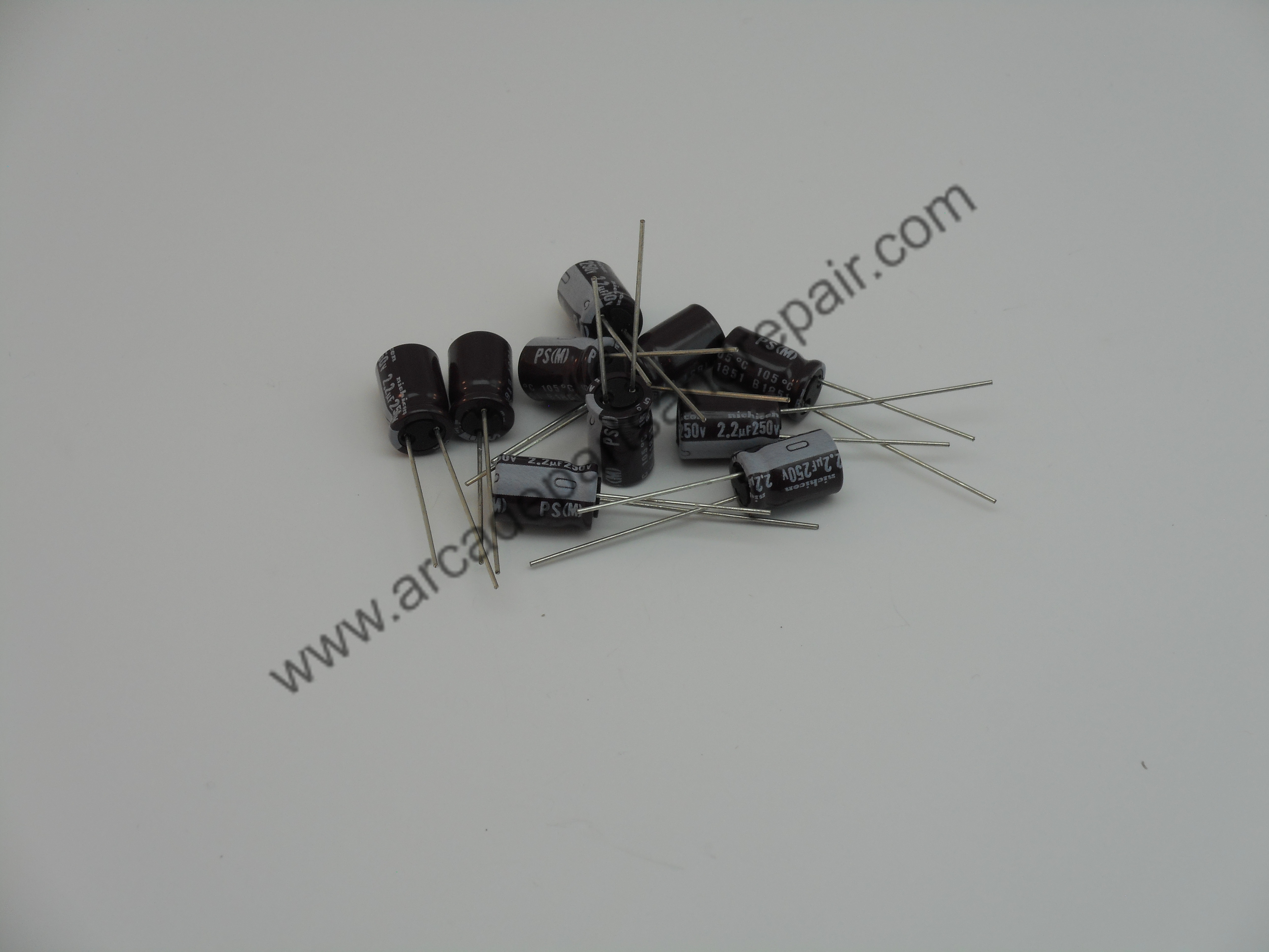 2.2uF 250V radial High Ripple Current, Low Impedance, high reliability and Long Life 105C Electrolytic Nichicon Capacitor (10 Pack). Case size is 8mm diameter, 11.5mm length, 3.5mm lead spacing, 29mA Ripple current and 2000 hour endurance. For every quantity of 1 added to your cart you will receive 10 capacitors.