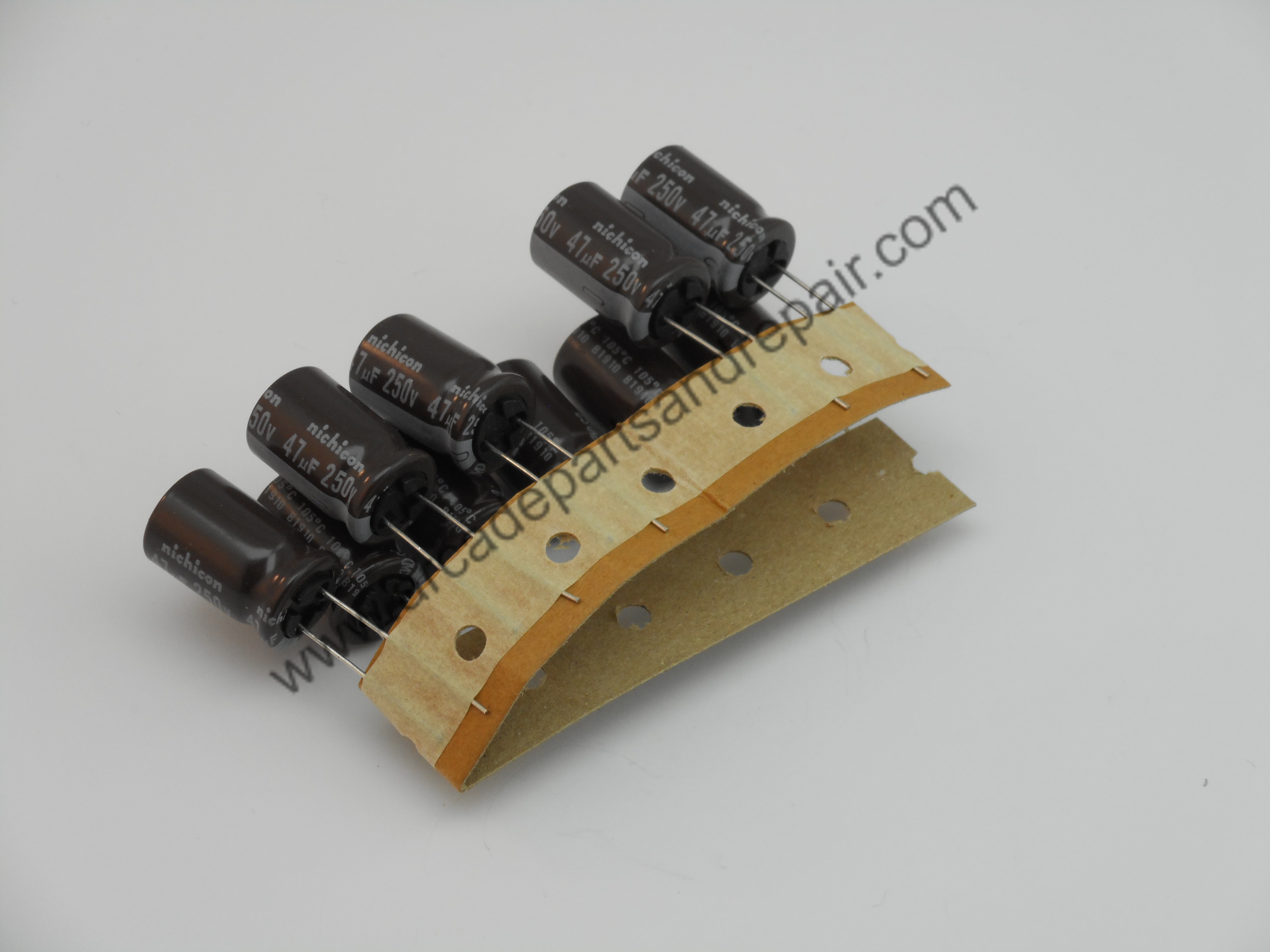 47uF 250V radial High Ripple Current, high reliability and Long Life 105C Electrolytic Nichicon Capacitor (10 Pack). Case size is 12.5mm diameter, 20mm length, 5mm lead spacing, 980mA Ripple current and 10,000 hour endurance. For every quantity of 1 added to your cart you will receive 10 capacitors.