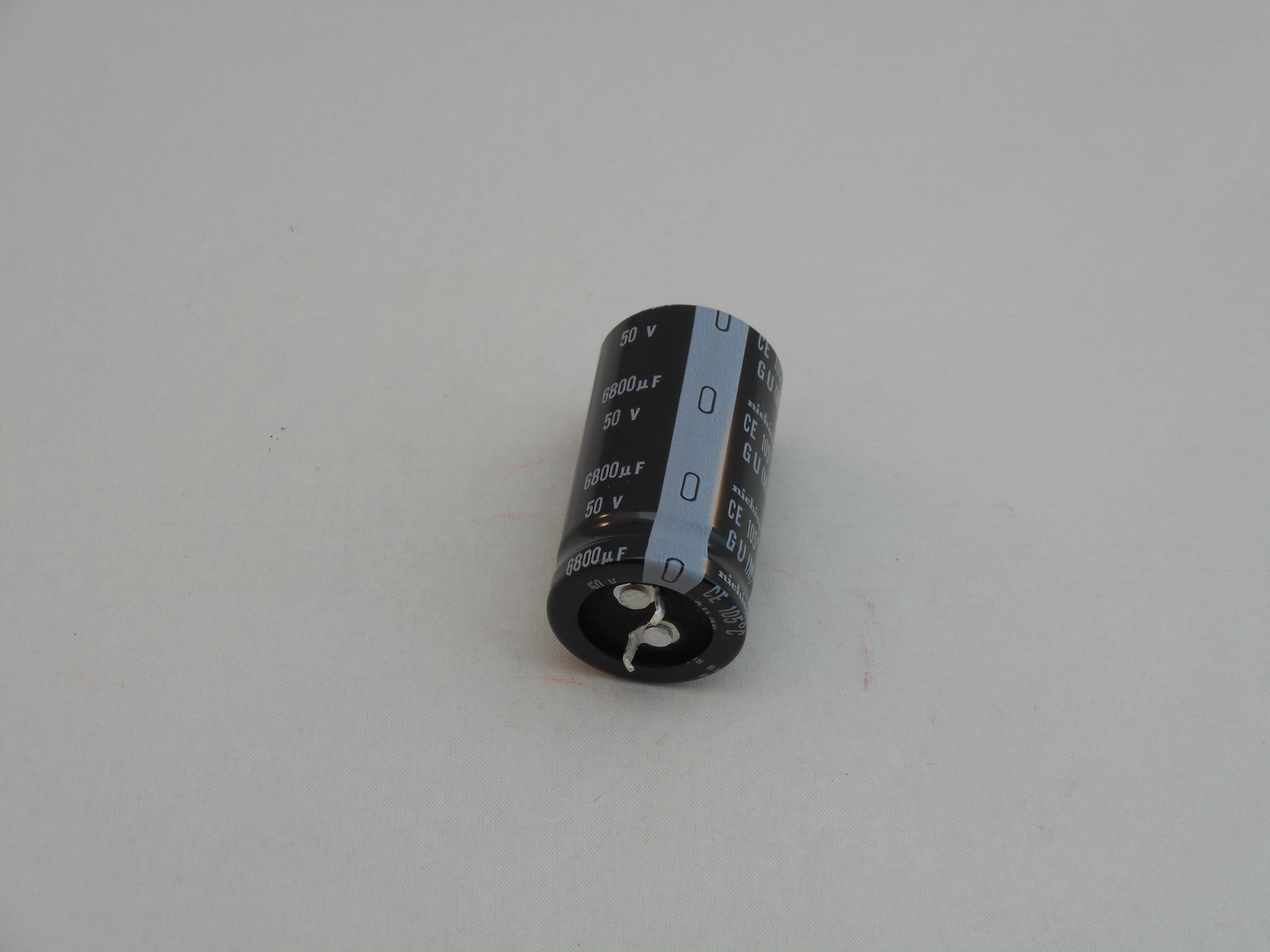6800uF 50V Nichicon 105c B+ Filter Capacitor 10mm lead spacing with case size of 25mm x 45mm 3000 hour snap in cap. Used on many arcade monitor applications such as Wells Gardner 19V2000, Electrohome G05-802 and GO5-805 chassis C100 and C101 filter cap. P299 Deflection amplifier board PCB.