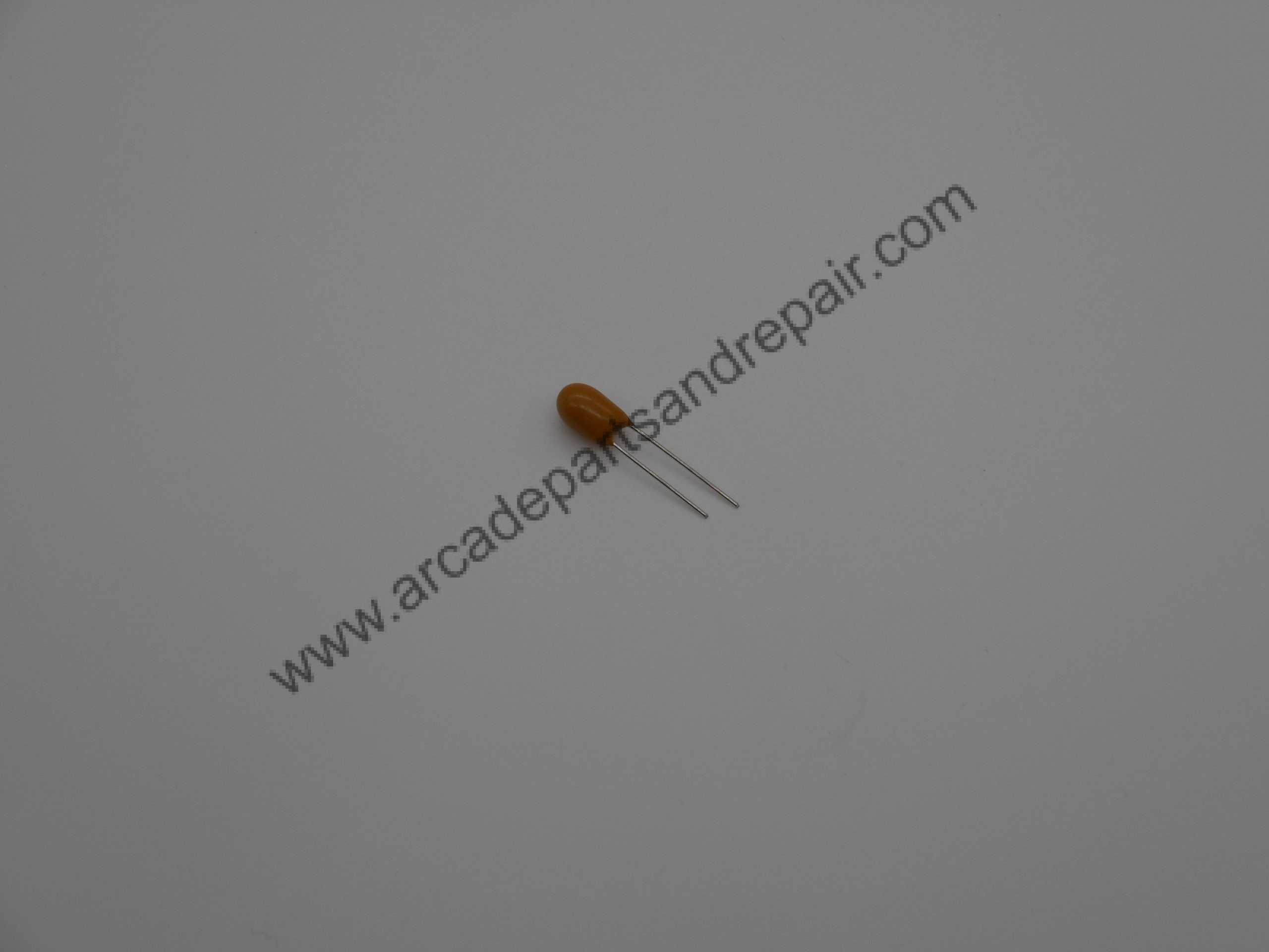 6.8uF 35V 10% tolerance 685K (6800nF, 6800000pF) tantalum radial capacitor (MC1074). Used on many arcade and pinball applications and any other applications that require this value and type of capacitor.