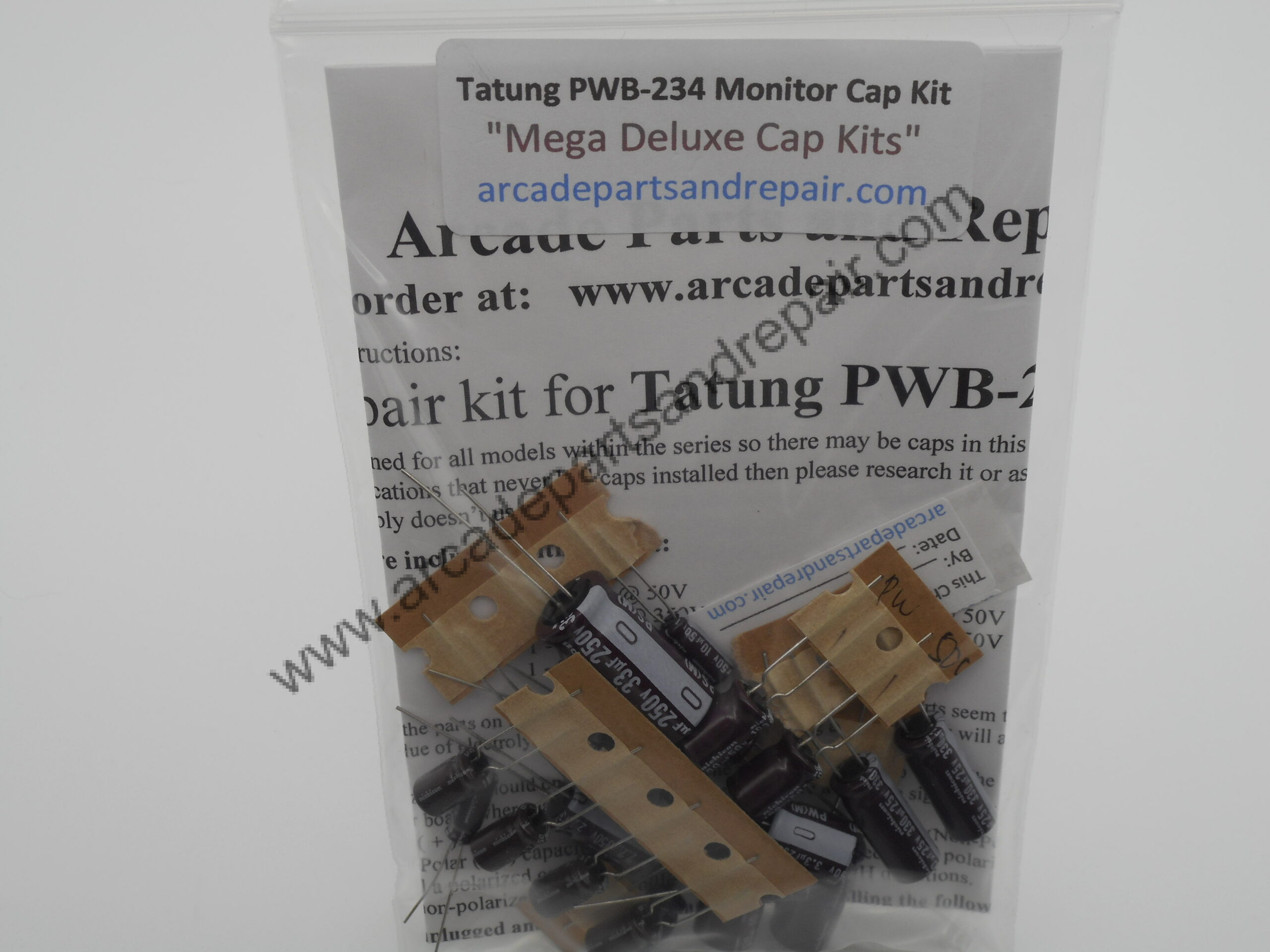 Tatung PWB-234 Arcade Monitor Cap Kit 105C 100% Nichicon Capacitors. “Mega Deluxe Cap Kits” Our kits have some of the BEST quality, low ESR, and longest life capacitors included. Some PCB markings on the chassis to help ID it are 5053129500. All of our Cap Kits / Get Well Kits include a sticker so you can place it on the monitor to help you keep track of the work you did and when it was done. 25 Capacitors included in this kit and with great instructions. NOTE: Filter cap for this chassis is a 680uf 200v and is not included in kit but can be purchased separately on our site.
