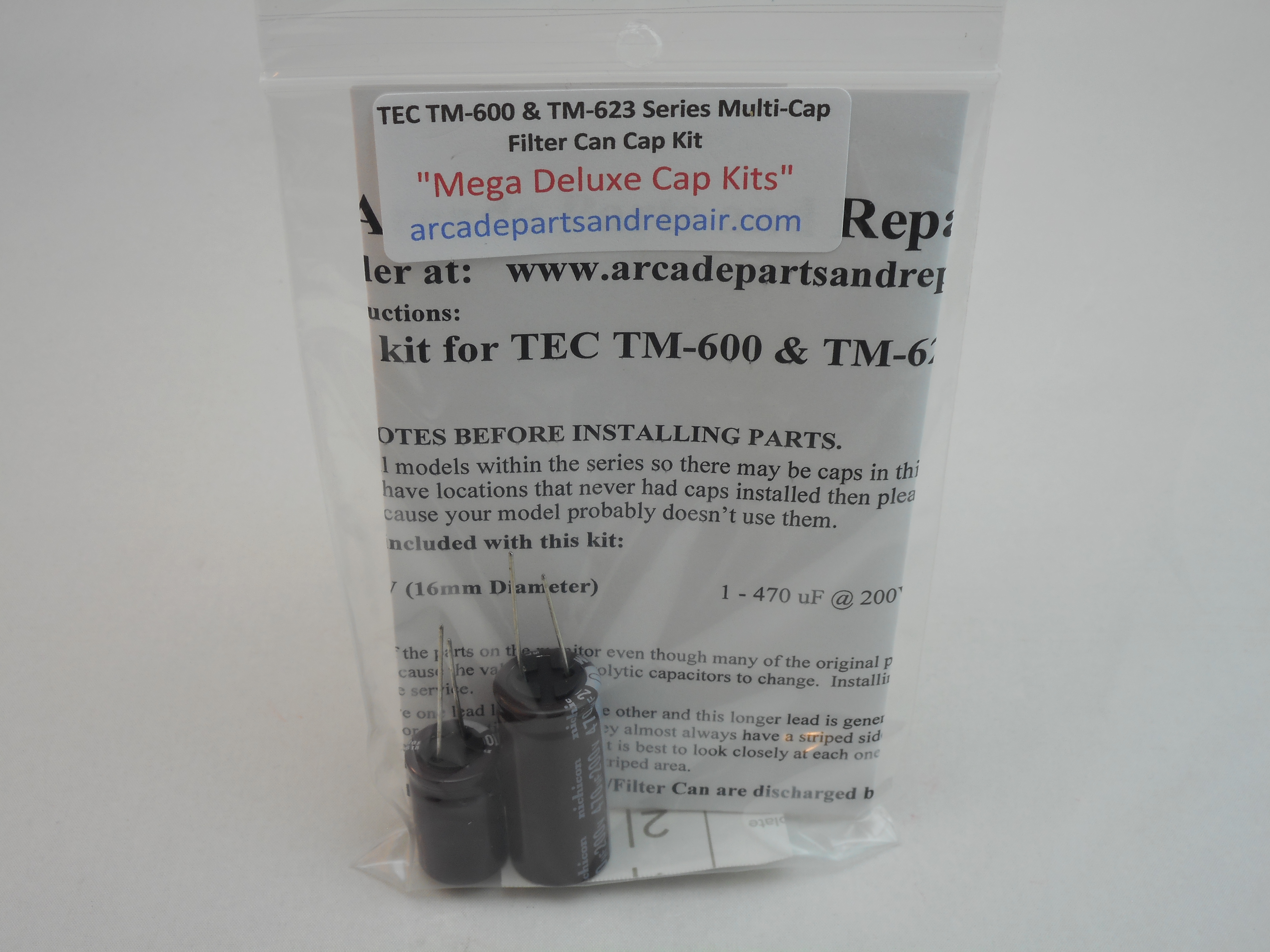 TEC TM-600 and TM-623 Series arcade Monitor C901 Multi Cap B+ Filter Can Kit 105C 100% Nichicon Capacitors. 2 Capacitors included in the kit and with instructions. “Mega Deluxe Cap Kits” Our kits have some of the BEST quality, low ESR, and longest life capacitors included. All of our Cap Kits / Get Well Kits include a sticker so you can place it on the monitor to help you keep track of the work you did and when it was done. This Multi Capacitor metal Filter Can has two capacitors (C901A & C901B) inside it and this kit takes some experience to install. The caps can be installed above and below the chassis or you can cut the can apart then clean it out and try to install the new caps in the can and reassemble.