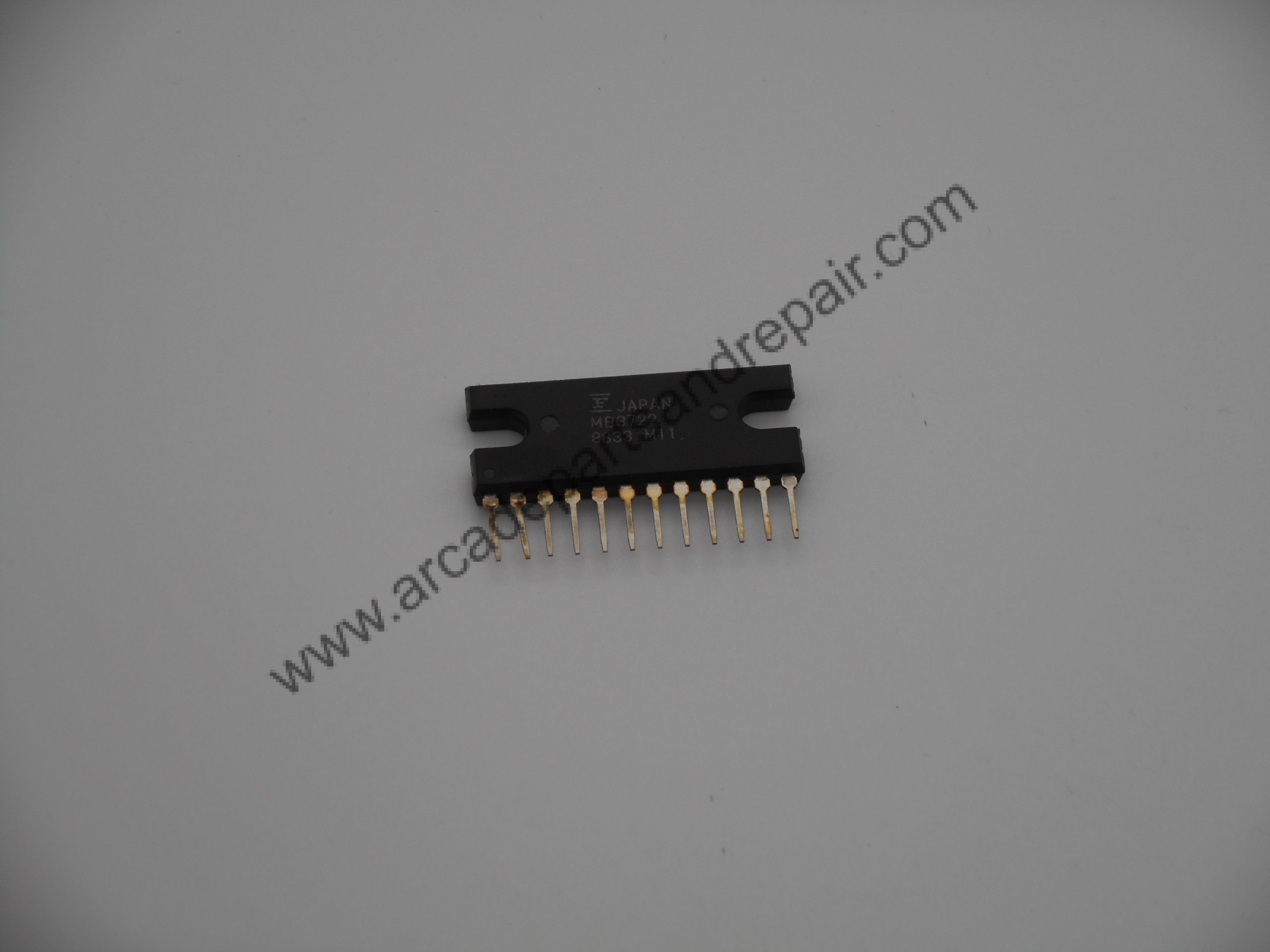 MB3722 is a Fujitsu 5.8W Dual Audio power amplifier and is a low frequency, high power audio amplifier, SIP-12 Package.  These are used on many arcade game PCBs such as Konami Xmen (X-Men) game and others that use this audio amp.