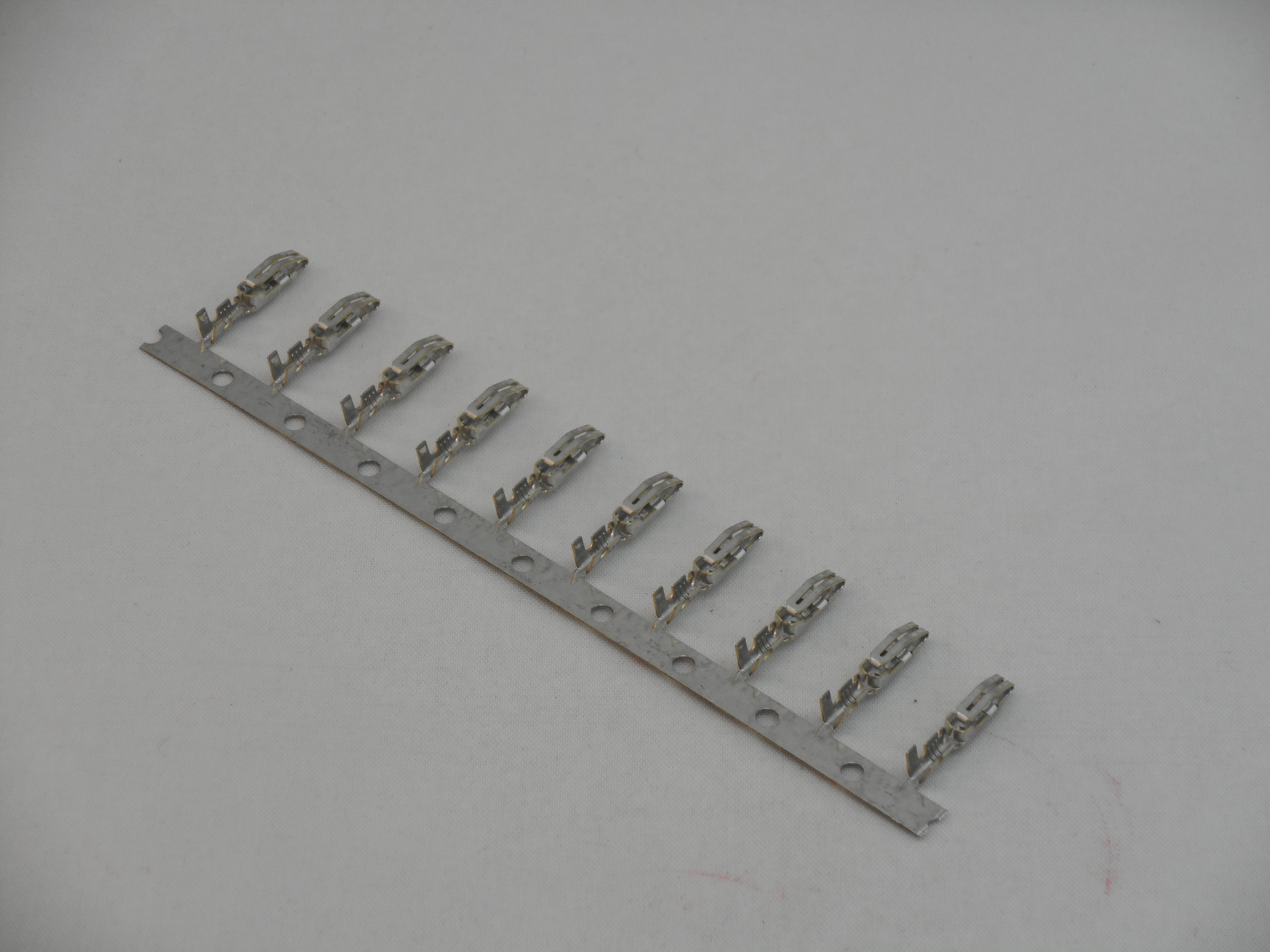 Bifurcated .156 Edge Connector Split Pin Crimp Contact / Pin terminals 18-24 AWG (10 pack) (ME1004).  These are the best quality arcade / pinball pins and they fit ALL of our Molex PCB Edge connector housings with our EZ part numbers of MExxxx.  These pins are for use with 18-24 gauge wire.  These can replace any and all of the following molex part numbers Series 4573 & 4574 08-03-0303, 08-03-0304, 08-03-0305, 08-03-0506, 08-05-0301, 08-05-0302, 08-05-0303, 08-05-0304, 50-36-1873, 40-01-1194 and work with Series 4338 and 4366.  For every quantity of 1 added to your cart you will receive 10 Pins / Contacts loose or on carrier strips.  NOTE:  These are not to be used with Molex single sided edge connector housings.