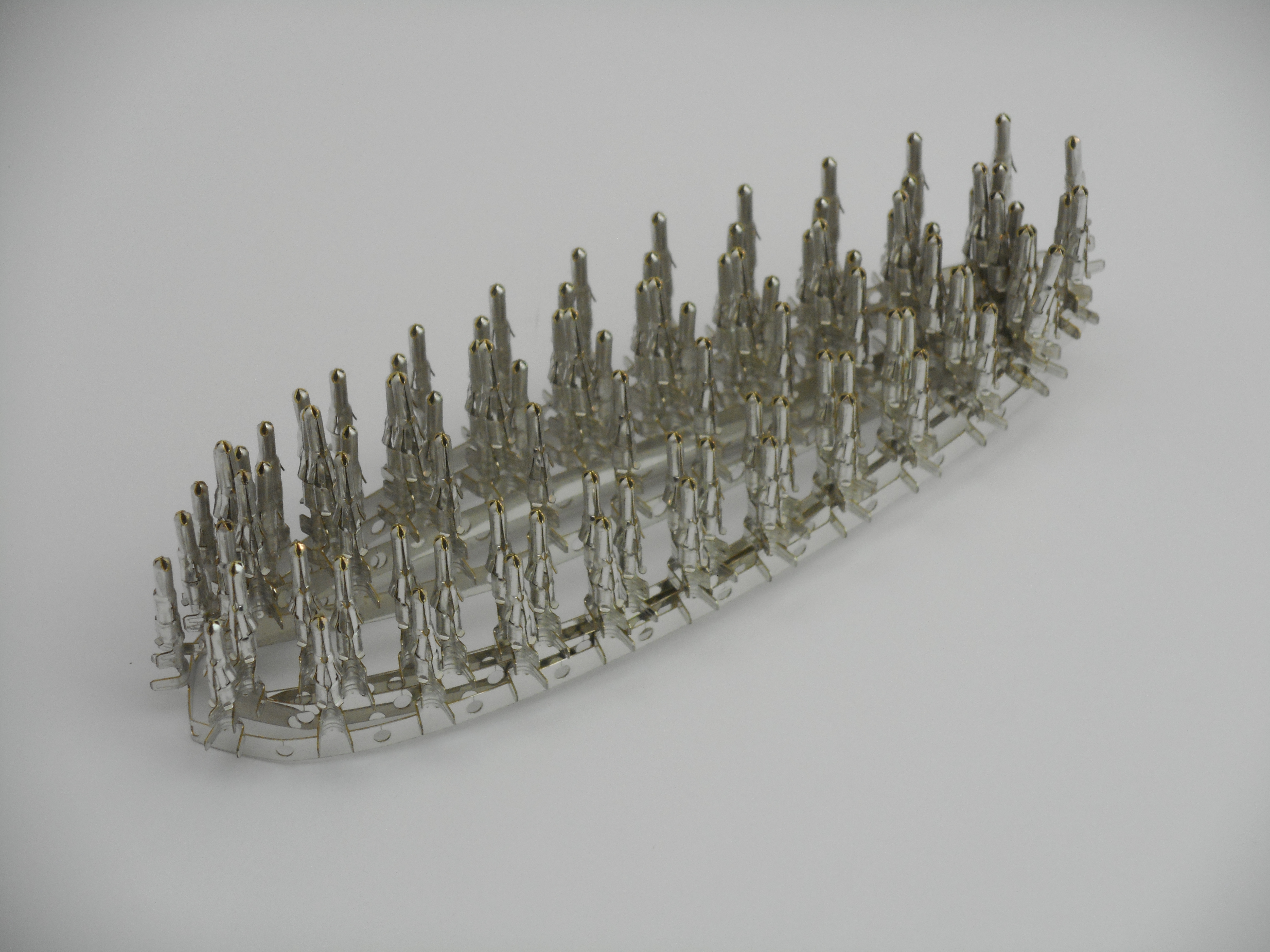 Molex 4.80mm Crimp Pins Male 18-24 AWG (100 pack) (CH1004).  These pins are for use with 18-24 gauge wire.  For every quantity of 1 added to your cart you will receive 100 Male Loose or on Carrier Strip Pins / Contacts.