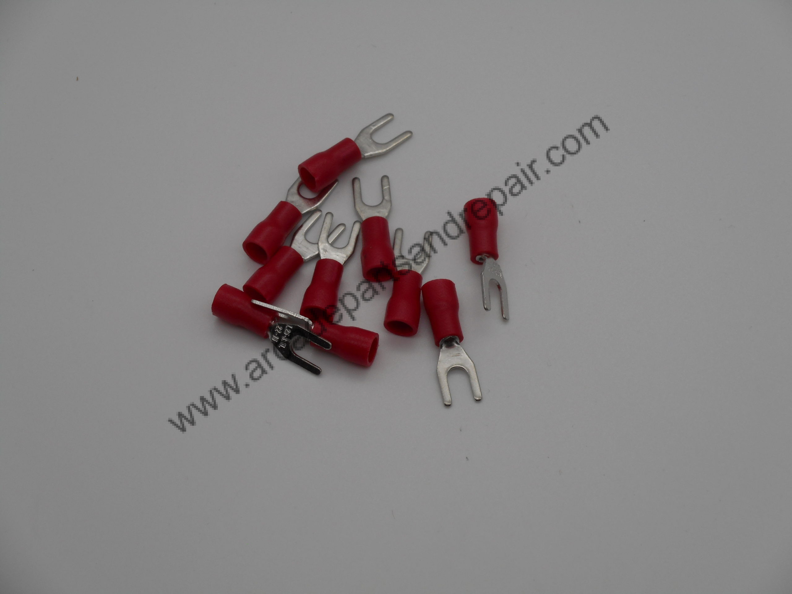Spade Terminal #6 Partially Insulated Red 18-22AWG (10 Pieces) (QD1012). Spade Terminals are for #6 Stud size (inside measures 3.5mm / 0.138″). Vinyl insulation sleeve withstands the pressure of crimping, Color coded for easy identification, Voltage Rating: 300V / 600V. For every quantity of 1 added to your cart you will receive 10 pcs Spade Terminals.