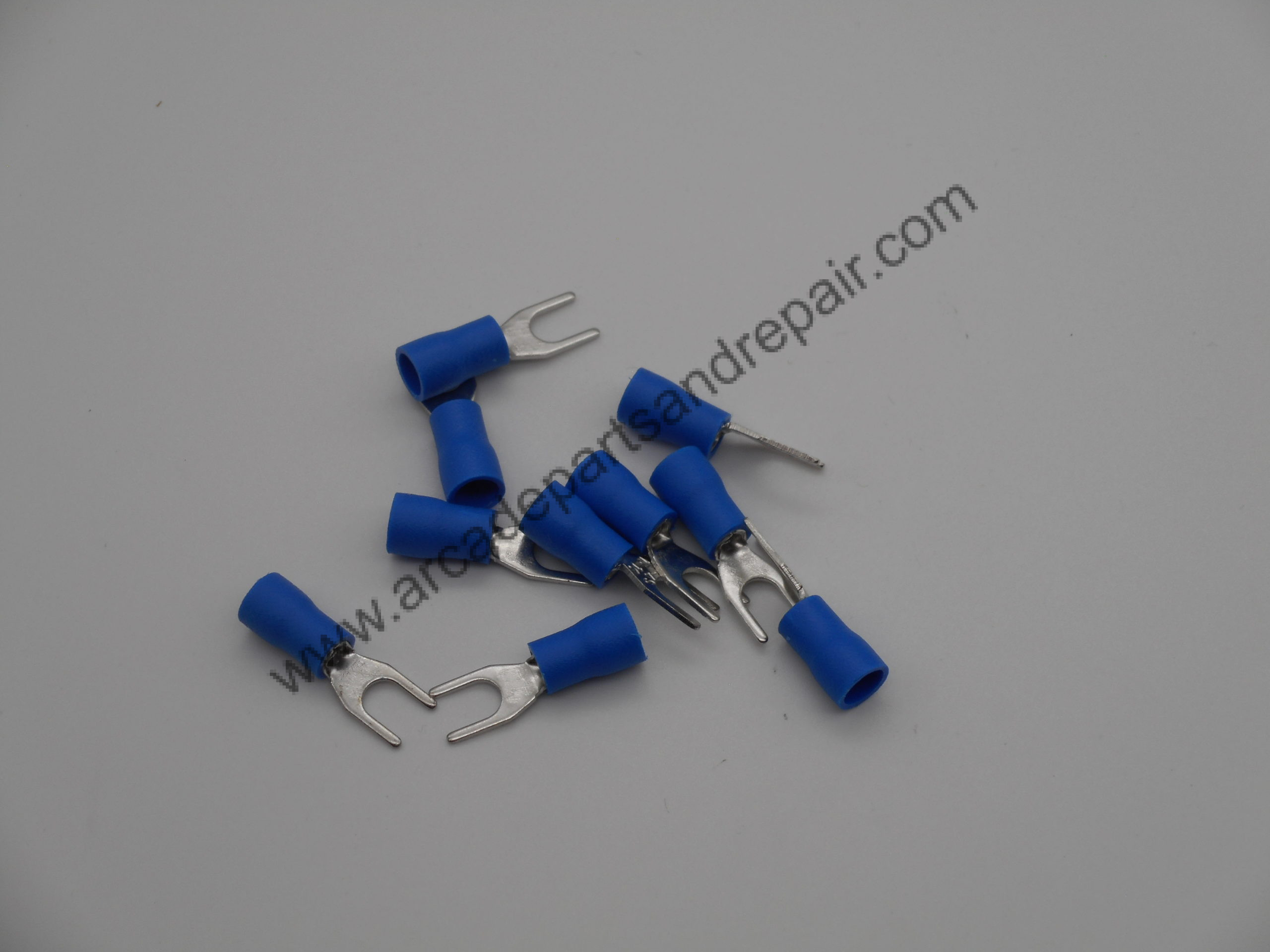 Spade Terminal #8 Partially Insulated Blue 14-16AWG (10 Pieces) (QD1013). Spade Terminals are for #8 Stud size (inside measures 4.0mm / 0.164″). Vinyl insulation sleeve withstands the pressure of crimping, Color coded for easy identification, Voltage Rating: 300V / 600V. For every quantity of 1 added to your cart you will receive 10 pcs Spade Terminals.