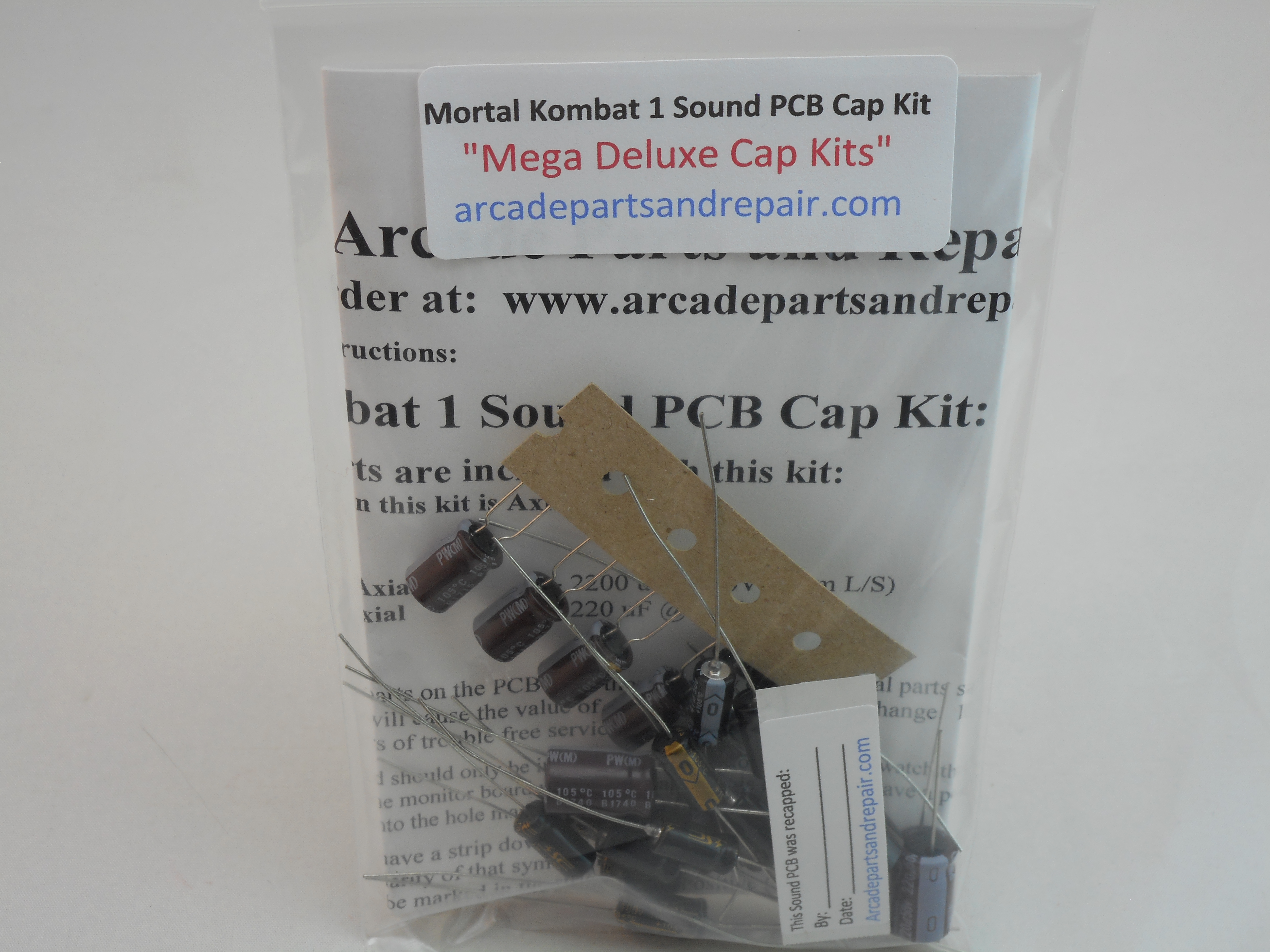 This Midway Mortal Kombat 1 Sound A-14732-40025 PCB 105C cap kit. This kit will also work for the Williams / Midway A-14732-43725 / A-15739 / 5768-13265 / A14732-40010.  This MK1 Mortal Kombat I “Mega Deluxe Cap Kit” has a total of 24 Capacitors.  All capacitors are 105c in this kit including the 15 Axial capacitors in this kit and 100% of the radial capacitors in this kit are Nichicon.  All of our Cap Kits / Get Well Kits include a sticker so you can place it on the PCB to help you keep track of the work you did and when it was done.  24 Capacitors total included in this kit with great instructions.  Our kits have some of the BEST quality, low ESR, and longest life capacitors in them which are the best for audio circuits.