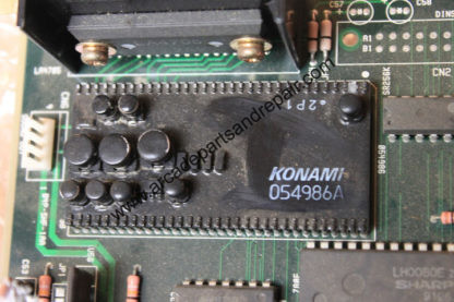 This PCB is a Reproduction of the 054986A audio module you will find on the following Konami PCBs: Lethal Enforcers, G.I. Joe, Metamorphic Force, Run & Gun, Premiere Soccer, Bucky O’ Hare, Violent Storm, Monster Maulers, Wild West C.O.W.-Boys of Moo Mesa, Martial Champion, Gaiapolis, Mystic Warriors. The reproduction will come complete with all of it’s parts EXCEPT the ASIC 054321 and the AD1868R DAC which you have to source and install on your own. These are new reproductions made by Caius. The last picture of the original part is for reference only.